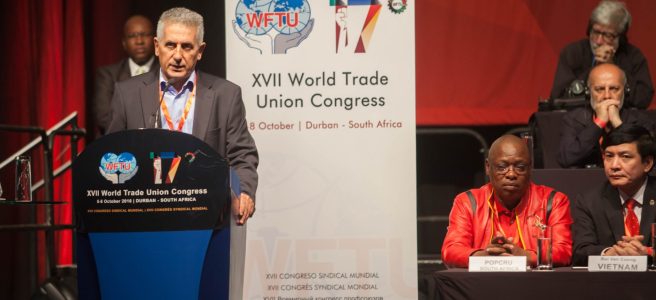 Estas acciones son provocativas e inaceptables. La FSM es una organización sindical internacional masiva, de clase, con 92 millones de miembros en 126 países del mundo. Desde su fundación, en octubre de 1945 hasta hoy, su historia es pública y conocida. Nunca ha sido servil hacia los imperialistas o las multinacionales. Ni ahora venderá su historia.