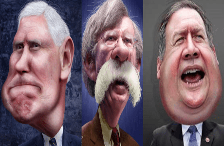 Ilustración: Pence, Bolton y Pompeo caricaturas de DonkeyHotey.