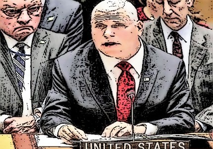 Durante el abierto desconocimiento de la delegación oficial venezolana, anunció que la Administración Trump prepara una resolución para que la ONU reconozca el «gobierno paralelo» de Juan Guaidó, con la intención manifiesta de acelerar los pasos institucionales que desemboquen en una intervención militar, investida de “humanitaria”, contra Venezuela.