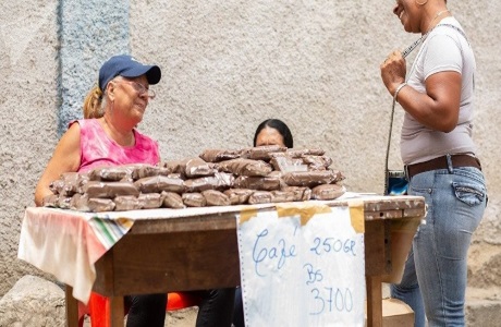 En una calle angosta se instalan los puestos de comida: pan, pescado, y café. La semana anterior fue de verduras, hortalizas, y pan. Prueban, ensayan, no esperan soluciones, sino que buscan cómo construirlas con su iniciativa y esfuerzo.