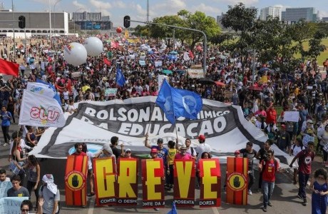 Las movilizaciones contra el flamante presidente de Brasil llegaron a un punto culminante el pasado 15 de mayo, cuando miles de estudiantes salieron a las calles de todo el país para protestar contra los recortes en Educación. Ahora, la CUT, la CTB, la CGTB entre otras entidades gremiales convocan al paro general para repudiar el avance sobre la ley de jubilaciones bajo la consigna: «Vamos a parar un día para evitar el retroceso de toda una vida» .