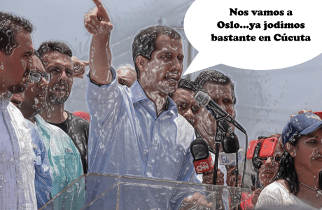 Pero, al surgir el espacio de negociaciones abierto por Noruega, Elliott Abrams tomó el relevo desde el Departamento de Estado y aceptó los encuentros de Oslo, negociación que no estaba contemplada. El vicepresidente Mike Pence había señalado en febrero que «no es momento de diálogo, sino de acción». Pero las acciones guiñadas y financiadas por EEUU, no lograron ninguno de sus objetivos