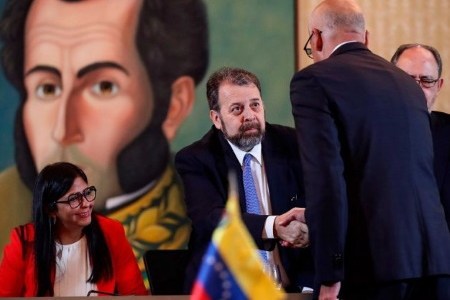 El encuentro tuvo como representantes, por parte del Gobierno, a la vicepresidenta de la República Delcy Rodríguez, al ministro de Información Jorge Rodríguez y al canciller Jorge Arreaza, entre otros altos funcionarios.