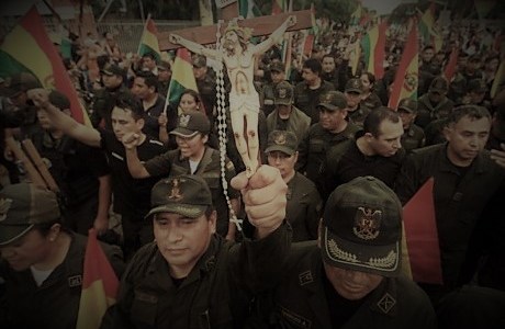 El cívico Camacho vendió la idea de que fue Cristo, cuando supuestamente ingresó a palacio de gobierno, quien sacó a Evo del poder; es más, hasta llegó a afirmar en medios nacionales e internacionales, que “fue un milagro” que, en menos de quince minutos, después de ingresar la Biblia a palacio, Evo renunciara. Todos los apologistas del ficcionado relato de la “revolución de las pititas”, jamás se pusieron a tematizar el simbolismo teológico de dominación que representaba esa teatralización evangélica. No fue ningún milagro, sino que todo estaba planeado; con Camacho regresaba el golpe cívico-prefectural del 2008, el rechazo a la Constitución, la oferta fascista de que Goni gobierne desde Santa Cruz, es decir, la respuesta oligárquica a la insurrección popular del 2003. La llegada de Camacho a La Paz era la señal para el amotinamiento policial y la apostasía constitucional del ejército (el gobierno estaba cercado, no darse cuenta de ello ya no era ingenuidad sino traición interna).
