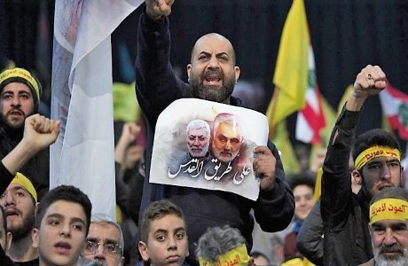 Foto: Seguidores y militantes de Hezbolá protestan en el Líbano luego del asesinato del sadar Qassem Soleimani (Foto: AP).
