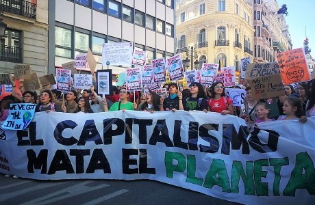 Las “huelgas globales por el clima” coorganizadas por el grupo de acción climática 350.org no han incluido huelgas laborales reales, organizadas por sindicatos en disputa con sus empresas. En su lugar, han supuesto que jóvenes faltaran a clase, con algunas manifestaciones de adultos apoyándoles, a veces animadas por los sindicatos y permitidas por la patronal.