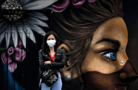 Foto: Una mujer en Bogotá porta un tapaboca para protegerse del virus Covid-19. Bogotá, Colombia. 25 de marzo de 2020. © Juan BARRETO / AFP