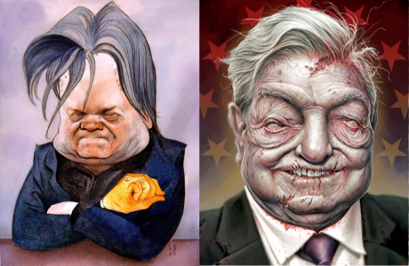 Caricaturas: Steve Banon realizado por Steve Brodner EEUU y George Soros de ArgusInk.com