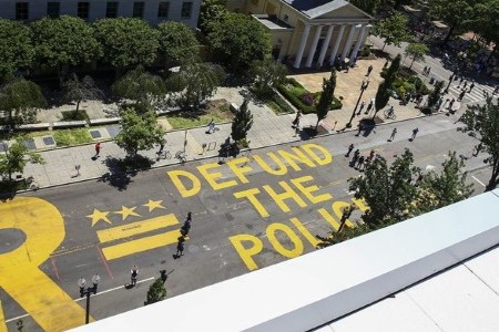 Foto: Pintada con el lema Defund the Police en una calle de Washington D.C. (Tasos Katopodis/Getty Images)