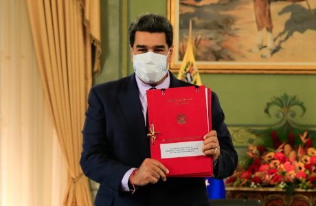 Foto: Nicolas Maduro Moros, Presidente constitucional de la Republica Bolivariana de Venezuela entregando la Ley Anti Bloqueo a la ANC.