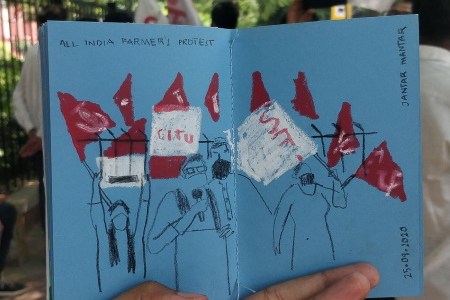 El campesinado y lxs trabajadorxs agrícolas del norte de India marcharon por diversas carreteras hacia la capital del país, Nueva Delhi, como parte de la huelga general del 26 de noviembre. Llevaban carteles con consignas contra las leyes anticampesinas y proempresas que fueron aprobadas por el Lok Sabha (cámara baja del parlamento) en septiembre, y que luego fueron aprobadas en el Rajya Sabha (cámara alta) con solo una votación oral. Lxs campesinxs y trabajadorxs agrícolas en huelga llevaban banderas que indicaban su afiliación a diversas organizaciones, desde el movimiento comunista hasta un frente amplio de organizaciones campesinas. Marcharon contra la privatización de la agricultura, ya que consideran que debilita la soberanía alimentaria de India y erosiona su capacidad para seguir siendo agricultorxs.