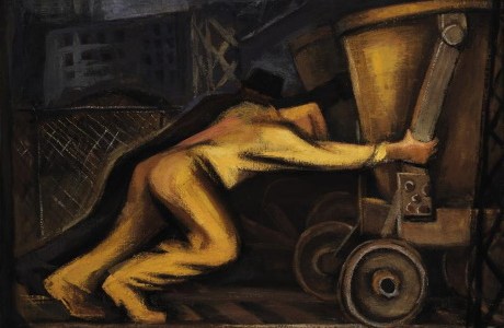 Pintura: Bendor Mark, EEUU Two Men Pushing Cart, 1939. (Smithsonian American Art Museum).