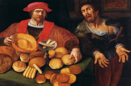Pintura: Rico y pobre o la paz y la guerra, anónimo flamenco del siglo XVII.