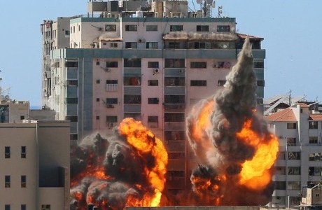 Foto: El edificio que albergaba las sedes de AP y Al Jazeera era alcanzado por los misiles israelíes, este sábado en Gaza. En vídeo, el edificio colapsa.