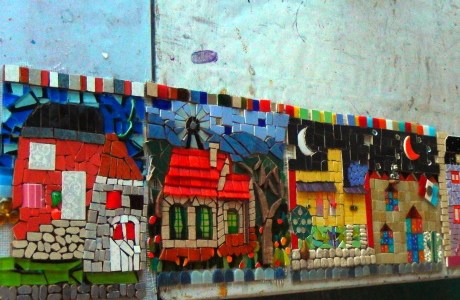 Mural: grupo de aficionados al muralismo en mosaico sobre los días y las noches vividos en cuarentena, Argentina.