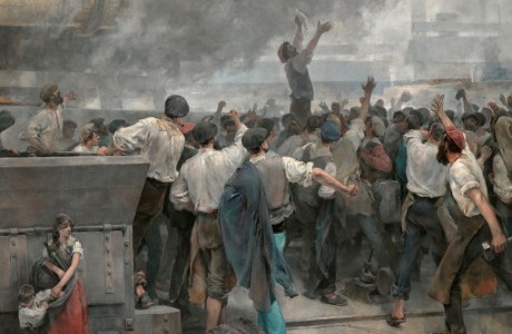 Pintura: «Una huelga de obreros en Vizcaya» de Vicente Cutanda y Toraya (1850-1925) España.