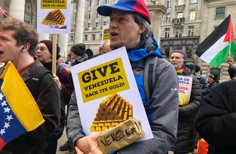 Foto: Protesta frente al Banco de Inglaterra para exigir la devolución de los 1200 millones de $ en oro venezolano, acción que forma parte del bloqueo financiero contra Venezuela (Imagen Misión Verdad, febrero 2019)