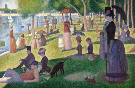 Pintura: «Tarde de domingo en la isla de la Gran Jatte» (Un dimanche après-midi à l’Ile de la Grande Jatte), George Seurat, 1884. Impresionismo puntillista.