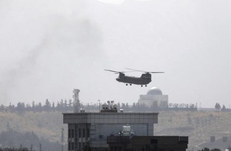 Foto: Igual que en Saigón en abril 1975, un helicóptero Chinook estadounidense sobrevuela la embajada de Estados Unidos en Kabul, Afganistán, el domingo 15 de agosto de 2021. Parafraseando a Marx, la historia se repite dos veces; como tragedia y como farsa imperial (Foto: VCG)