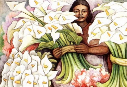 Pintura: Trabajo de recolección de flores pintura de Diego Rivera, México.