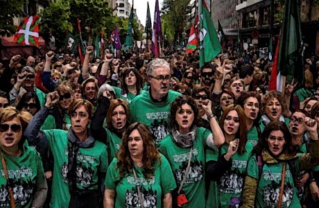 Las jornadas de huelgas de varios colectivos de trabajadoras en Euskadi, como las del Guggenheim [6], las trabajadoras de las residencias o las conservas de pescado de Bizkaia [7], mayoritariamente centradas en la lucha contra las condiciones laborales, integran sus reivindicaciones la cuestión del aumento del salario contra la brecha salarial. Sobre todo en los casos de negociación de convenios, desde donde despegan los conflictos. También está muy integrada la denuncia, en sus discursos y reivindicaciones, de que los trabajos más precarios, a tiempo parcial y desvalorizados están representados por mujeres.