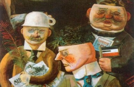 Pintura: Fragmento de «Los pilares de la sociedad» (1926) de George Grosz, Alemania.