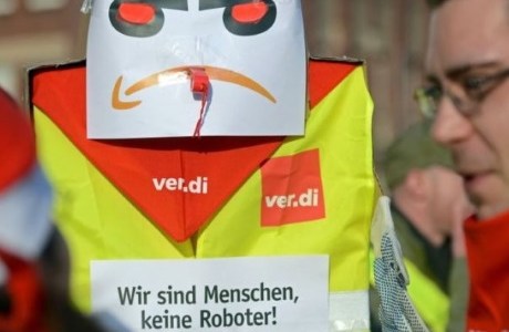 Foto: Huelga de trabajadores de la logística de Amazon por el Sindicato Ver.di en Alemania, 2019.