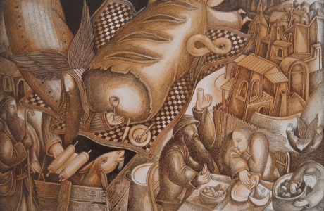 Ilustración: Nelson Romero, «El pan sobre la aldea»