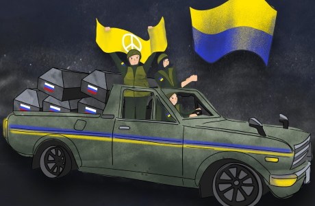 Algunos contienen mensajes genéricos de «no a la guerra», mientras que otras decenas de imágenes celebran al «Fantasma de Kiev», un heroico piloto ucraniano que resultó ser inexistente, y el falso incidente de «Los 13 de Isla de la Serpiente».