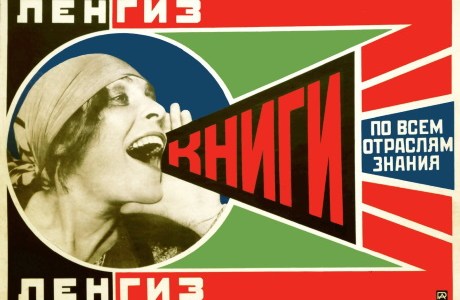 Cartel sovietico: Póster propagandístico de Aleksandr Mijáilovich Ródchenko (1891- 1956). La palabra ‘Lengiz’, que se repite arriba y debajo de la imagen, corresponde a las iniciales en ruso de Editorial Estatal, Sección de Leningrado. El texto que sale de la boca de la obrera dice «Libros. Conocimiento en todos los campos”. Litografía vanguardista de 1924. Cartel de la Russian State Library (Biblioteca estatal rusa), en Moscú.