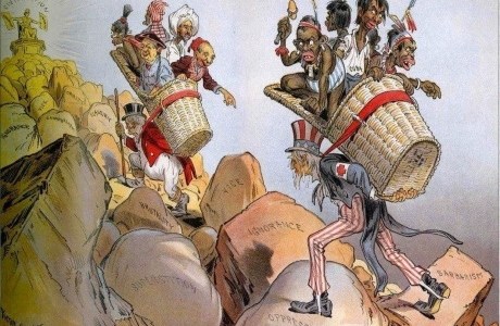 Caricatura: «La carga del hombre blanco» de Victor Gillam, 1899.