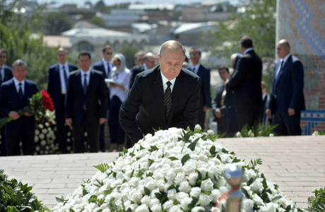 Foto: Putin rindió homenaje a la memoria del primer presidente uzbeko, Islam Karimov en Samarkanda.