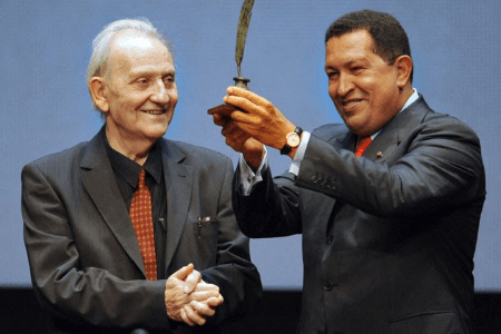 Foto: Hugo Chavez entrega a István Mészáros eñ Premio al Pensamiento Critico 2008.