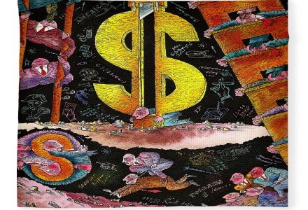 Dibujo: «La guillotina de la crisis económica y de la cultura empresarial» de Leon Zernitsky, Rusia.