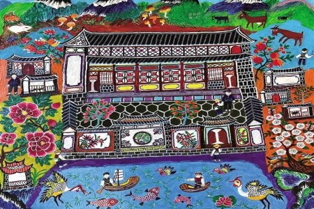 Pintura: Wang Bingxiu del Club de pintura de campesinos de Shuanglang (Prefectura autónoma Dali Bai, China), Sin título, 2018.
