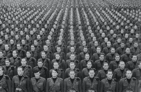 Imagen: Imagen de Jacobin. Camisas Negras italianos alineados en formación militar durante la Segunda Guerra Mundial. (Foto: European / FPG vía Getty Images)