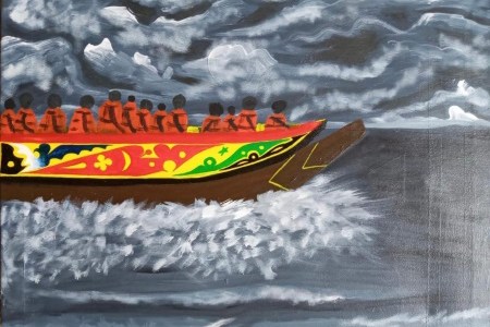 Pintura: Viaje de clandestinos por la noche de Ibra Niang, Senegal.