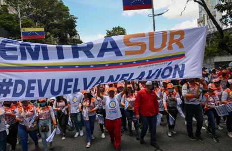 Foto: Manifestantes en Caracas exigen a Argentina que libere el avión de Emtrasur retenido en Buenos Aires. 9 de agosto 2022.FEDERICO PARRA (AFP)