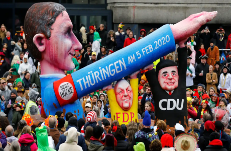 Foto: Un muñeco representando al líder de AfD en Turingia durante un desfile de Carnaval en Düsseldorf. Reuters.