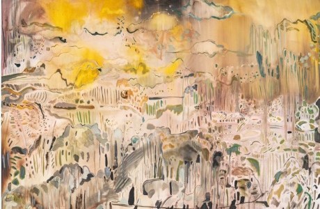 Pintura: Alia Ahmad (Arabia Saudita), Hameel [Lluvia matutina], 2022.