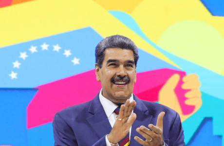 Foto: Presidente Nicolas Maduro durante el Acto de Unión Nacional en Defensa de la Guayana Esequiba en el teatro Teresa Carreño en Caracas el 7 de noviembre de 2023. © MARCELO GARCIA / AFP