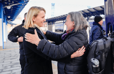 Foto: La embajadora de EE.UU. en Ucrania, Bridget Brink, recibe a la subsecretaria de Estado de EE.UU. para Asuntos Políticos, Victoria Nuland, en Kiev el 31 de enero de 2024 (La embajadora de EE.UU. en Ucrania, Bridget Brink/X)