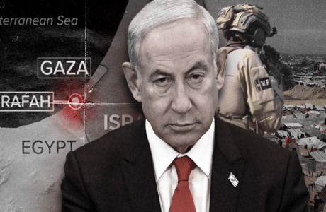 Hoy, la amenaza de Netanyahu de invadir Rafah, la zona más meridional de Gaza donde más de un millón de palestinos desplazados buscan ayuda, podría atrincherarle aún más en la crisis o precipitar su caída política.