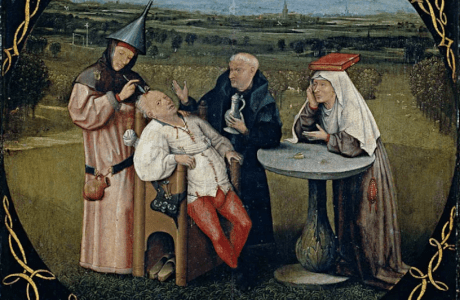 Pintura: «La piedra de la locura» (El Bosco, 1475-1480). Museo Nacional del Prado, Fragmento