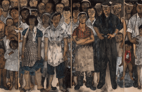 Iri y Toshi Maruki, X Petición, 1955, de Los paneles de Hiroshima. Tinta sumi, pigmento, cola, carboncillo o conté sobre papel, 180 × 720 cm.