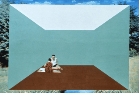Pintura: Erik Bulatov (URSS), People in the Landscape [Personas en el paisaje], 1976.