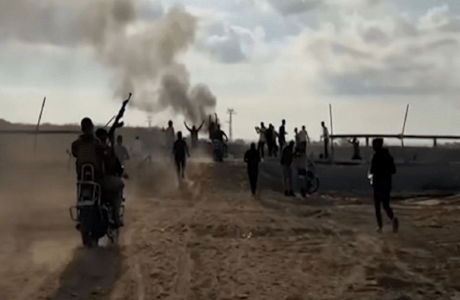 Foto: Militantes de Hamás cruzan la frontera entre Gaza e Israel durante el ataque del 7 de octubre. / The Guardian (Youtube)