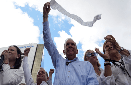 Foto: Edmundo González muestra un acta electoral en un mitin político (Foto: Archivo)
