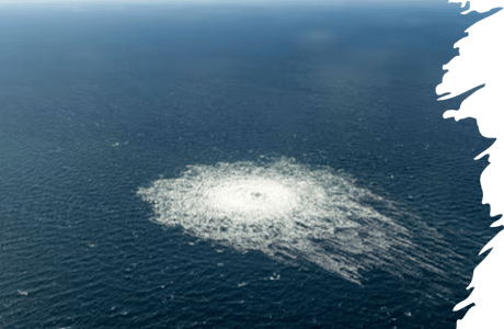 Imagen: Sabotaje del gasoducto Nord Stream 2 en septiembre del 2023. Fotografía: DANISH DEFENCE/AFP/Getty Images.