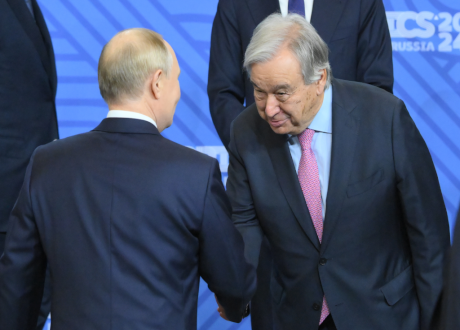 Pepe Escobar. Foto: El presidente ruso, Vladímir Putin, saludando al secretario general de las Naciones Unidas, Antonio Guterres durante la cumbre de los BRICS en Kazán. GRIGORY 28 de octubre 2024. Nota de Observatorio de Trabajador@s en Lucha Si quieres leer la declaración pincha en Declaración de Kazan XVI Cumbre BRICS Los giros no tan … Continuar leyendo LOS BRICS HACEN HISTORIA: ¿PODRÁN MANTENER EL IMPULSO? Pepe Escobar.